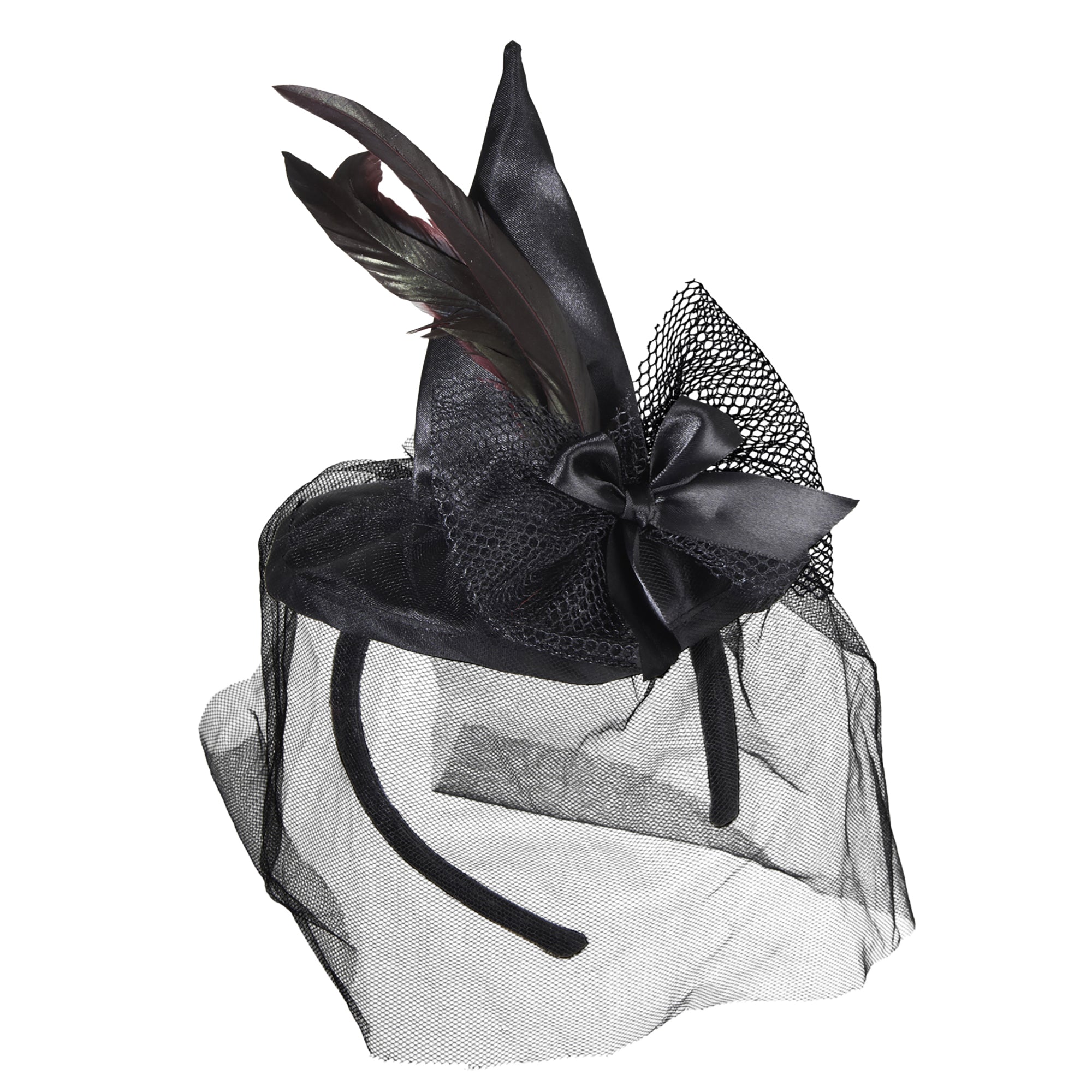 Trauernde Witwen oder geheimisvolle Hexen brauchen unbedingt den Hexenhut Miniatur mit Schleife Und Federn. Er ist aufregend mit mehreren Federn in schimmernden Farben, zwei Schleifen und einem zusätzlichen Gesichtsschleier versehen. Damit kann jede Träne ungesehen verschüttet werden!