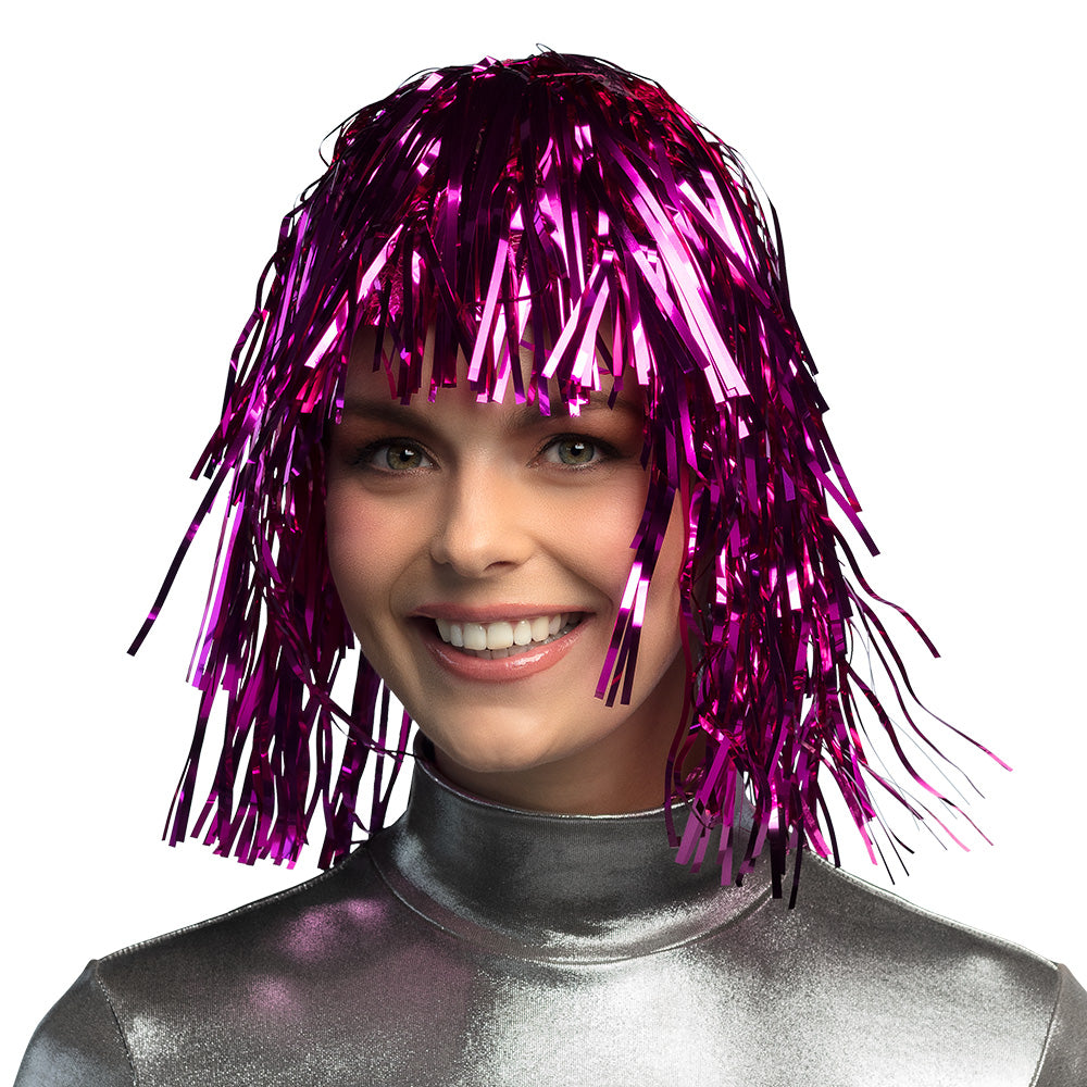 Lametta Damenperücke Pink Star