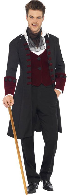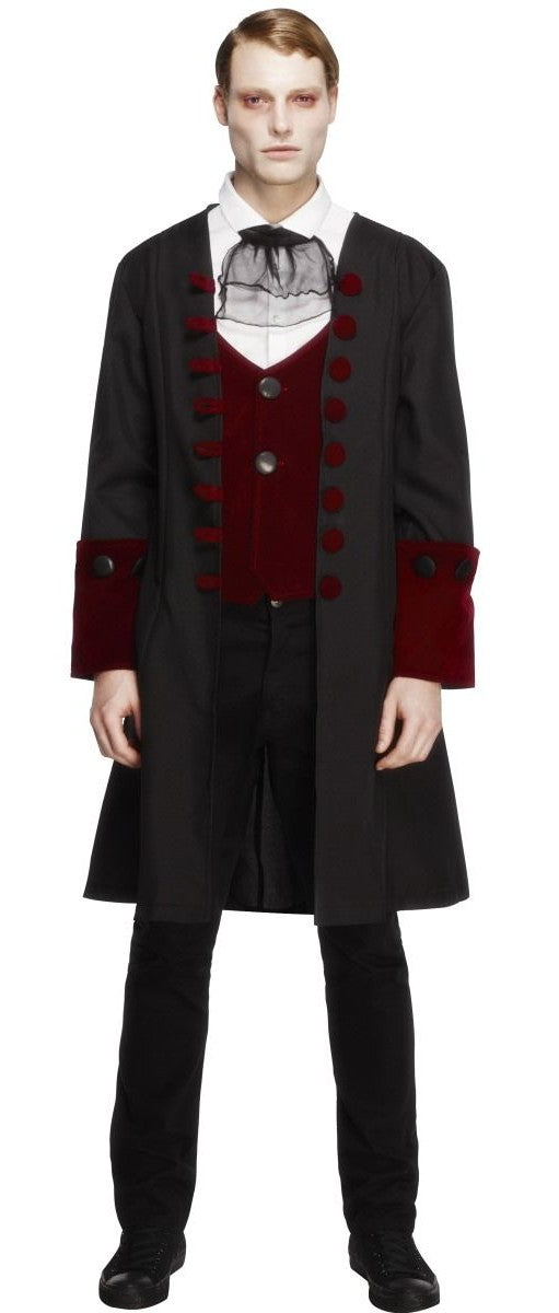 Verwandle dich in den geheimnisvollen Vampir Lord Nereus und werde zum eleganten Mittelpunkt jeder Halloween oder Karnevalsparty! Dieses hochwertige Herren-Kostüm kombiniert edles Gothic-Design mit hohem Tragekomfort. Das Set enthält eine Jacke, Weste und eine passenden Krawatte.