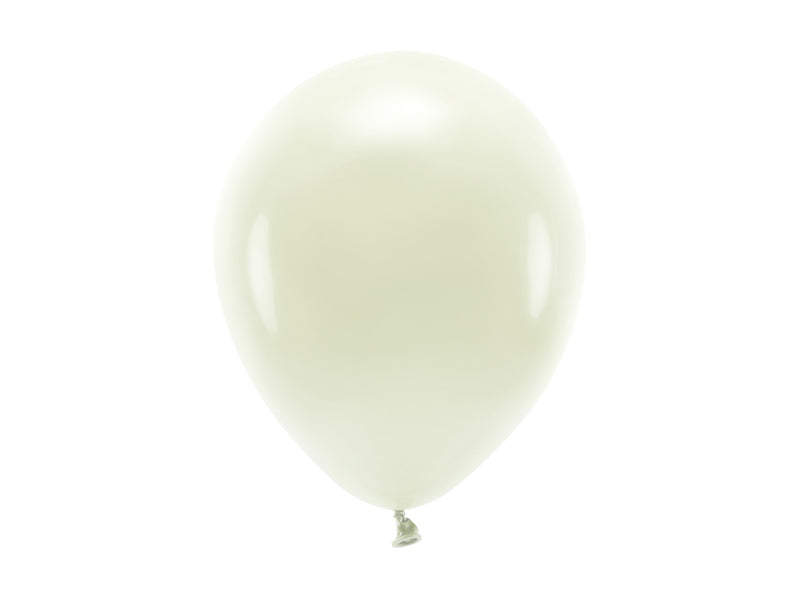 Die Eco Pastell Ballons creme sind aus natürlichem Latex vom Kautschukbaum gefertigt. Sie überzeugen durch ihre biologische Abbaubarkeit, die dem Kompostierungsprozess von Blättern gleicht. Für die Verpackung wurden ausschließlich natürliche Farben verwendet. Sie besteht aus sicherem Kunststoff und kann recycelt werden. Es gibt 100 Luftballons von 26cm Größe.