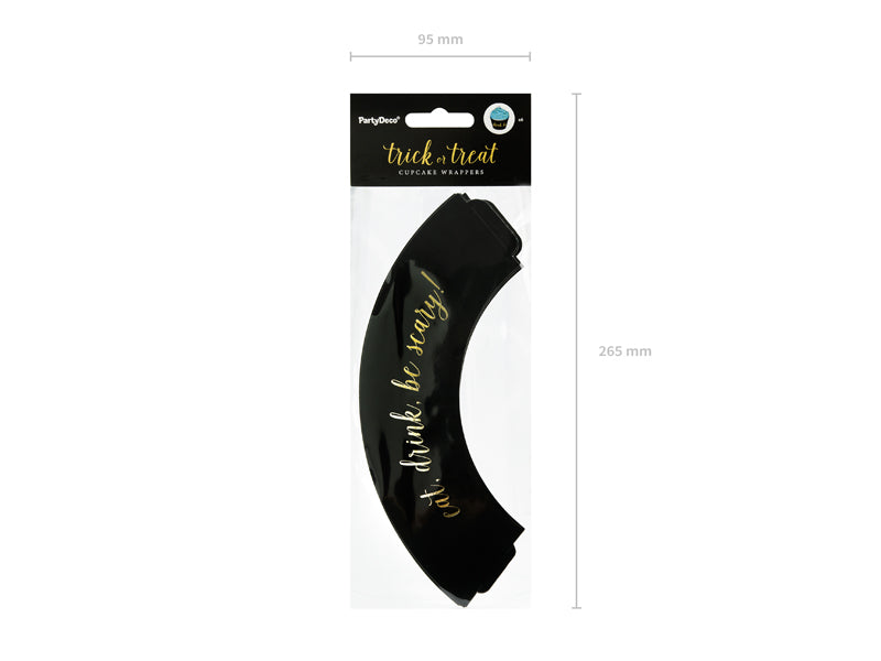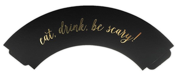 Mit den 6 Be Scary Muffin Umrandungen versiehst du auch deine Cupcakes mit einem edlen Halloweenlook. Die Cupcake Umrandungen verzaubern durch ihr schlichtes Design. Sie werden von dem Aufdruck Eat, drink, be scary geschmückt und haben eine Größe von 4,8 x 7,6 x 4,6cm.