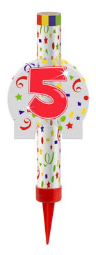 Ob zum 5. Geburtstag oder in Kombination mit einer weiteren Zahl, die Eis- und Tortenfontäne Zahl 5 mit einer Höhe von 12cm ist das Highlight auf der Geburtstagstorte. Für etwa 45 Sekunden versprüht sie ihre Funken und bringt den Raum zum leuchten.