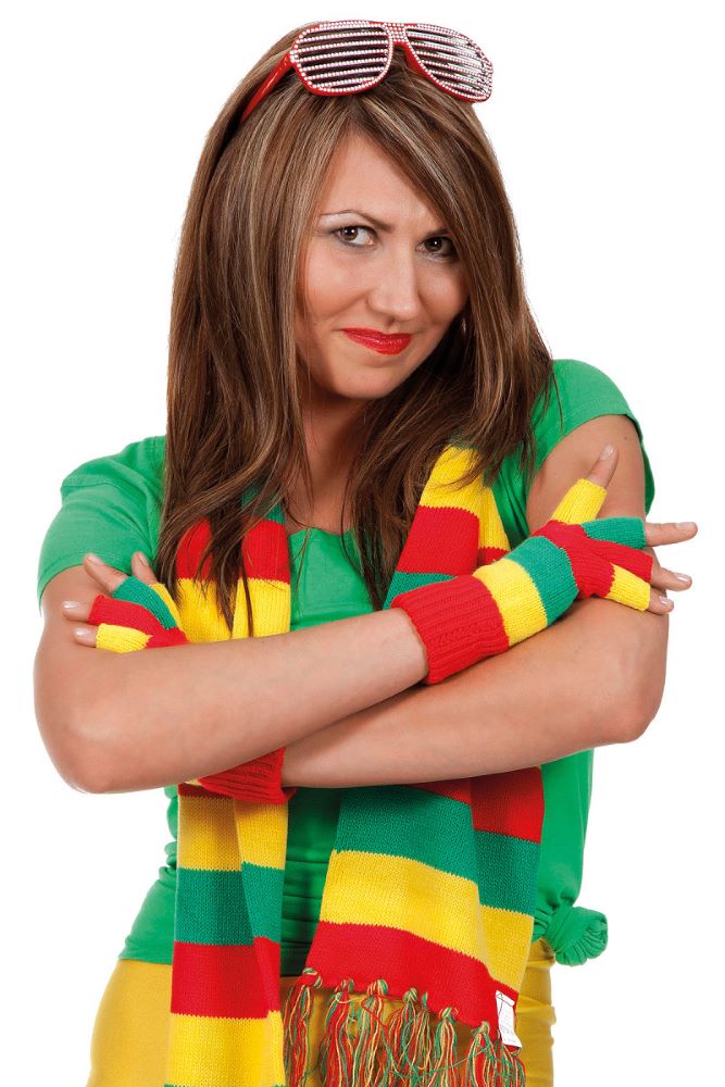 Fingerlose Strickhandschuhe rot-gelb-grün