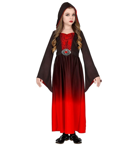 Werde mit dem Gothic Kleid Scarlett für Mädchen zur echte Gothic-Lady. Das lange Kaupzen-Kleid hat einen tollen Farbverlauf und eine auffällige Gürtelschnalle, die das Kostüm zu einem wahren Hingucker machen. Ob Halloween, Karneval oder Mottoparty, mit diesem Kostüm machen junge Mädchen garantiert nichts falsch.