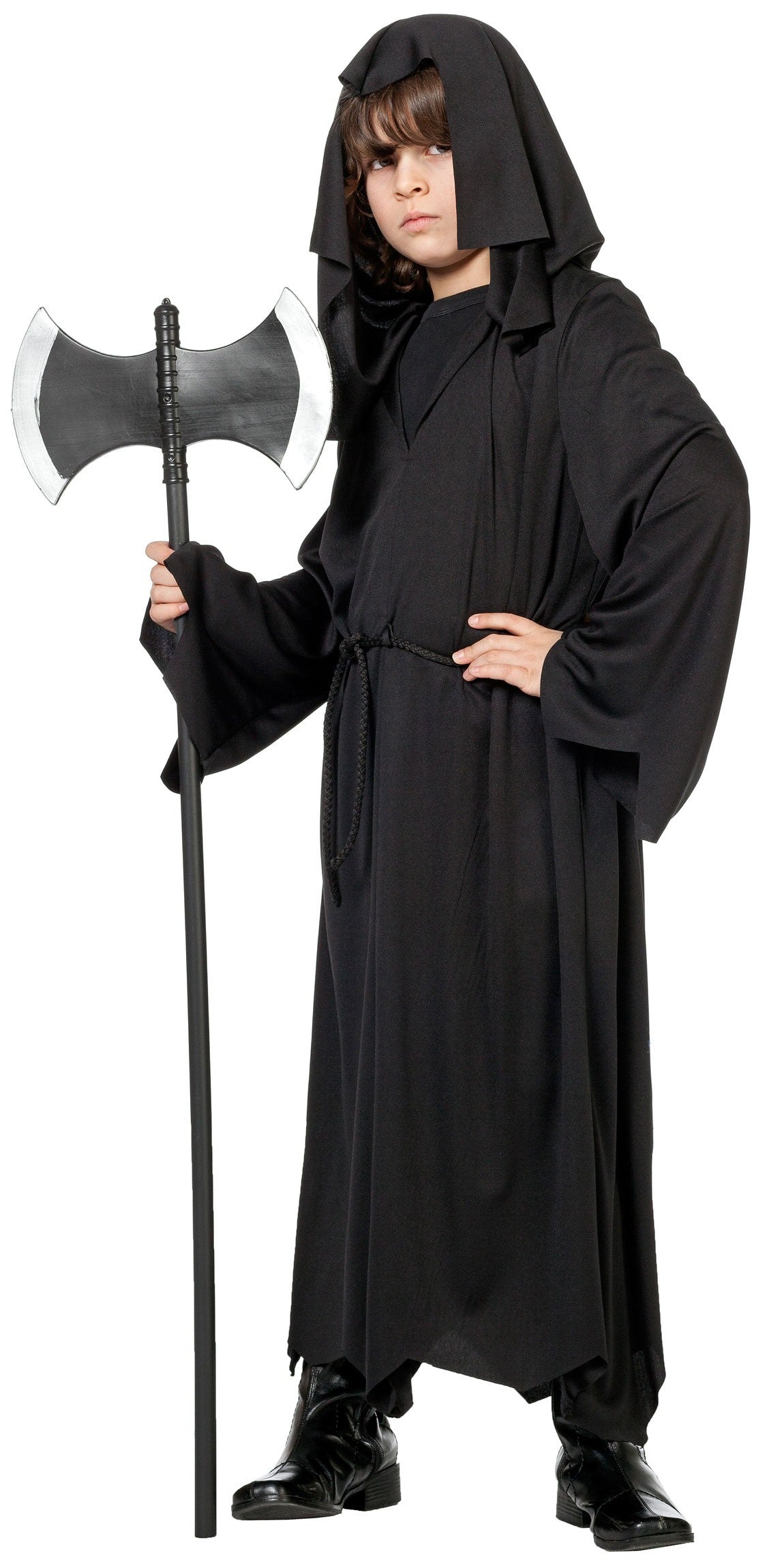 Mutig, geheimnisvoll und ein bisschen gruselig – mit dem Henker- bzw. Verlieswächter-Kostüm Julian wird jedes Kind zum unerschrockenen Hüter des finsteren Kerkers! Das dunkle Outfit mit Kapuze verleiht dem Träger eine mächtige, geheimnisvolle Ausstrahlung. Perfekt für kleine Abenteurer, die an Halloween oder Fasching gerne in düstere Rollen schlüpfen.