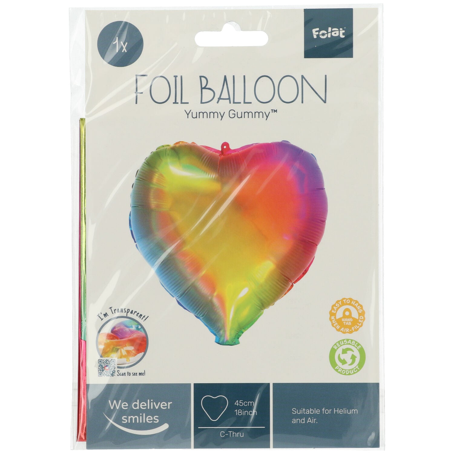 Herz Folienballon rainbow 45cm