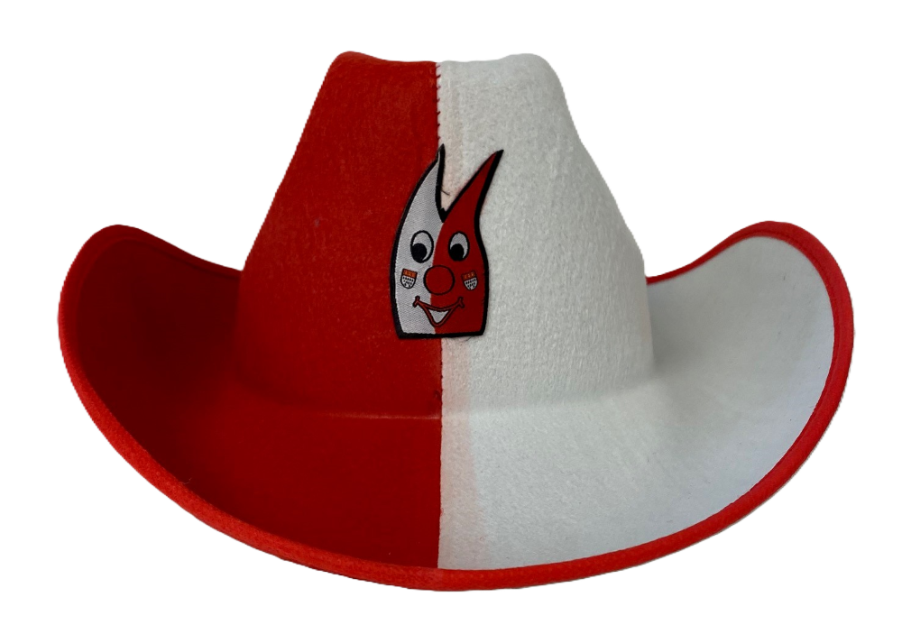 Du liebst den wilden Westen? Du liebst den Dom und den Rhein? Du liebst den FC und Rot-Weiß? Dann ist der Kölsche Cowboy Hut dein ideales Accessoire. In den Farben Rot und Weiß und frontal mit dem Kölner Dom verziert schmückt er deinen Kopf und passt sich perfekt deinem Karnevalsoutfit an.