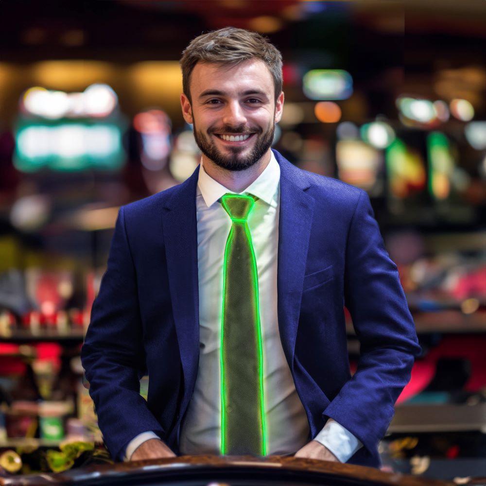 Insgesamt ist die Krawatte 48cm lang und 7,5cm breit. An der Rückseite ist ein Batteriefach versteckt.