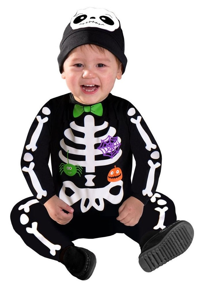 Das Niedliche Skelett Babykostüm besteht aus einem Overall mit Skelett Aufdruck sowie der Mütze. Eine tolle Kostümierung für Halloween.