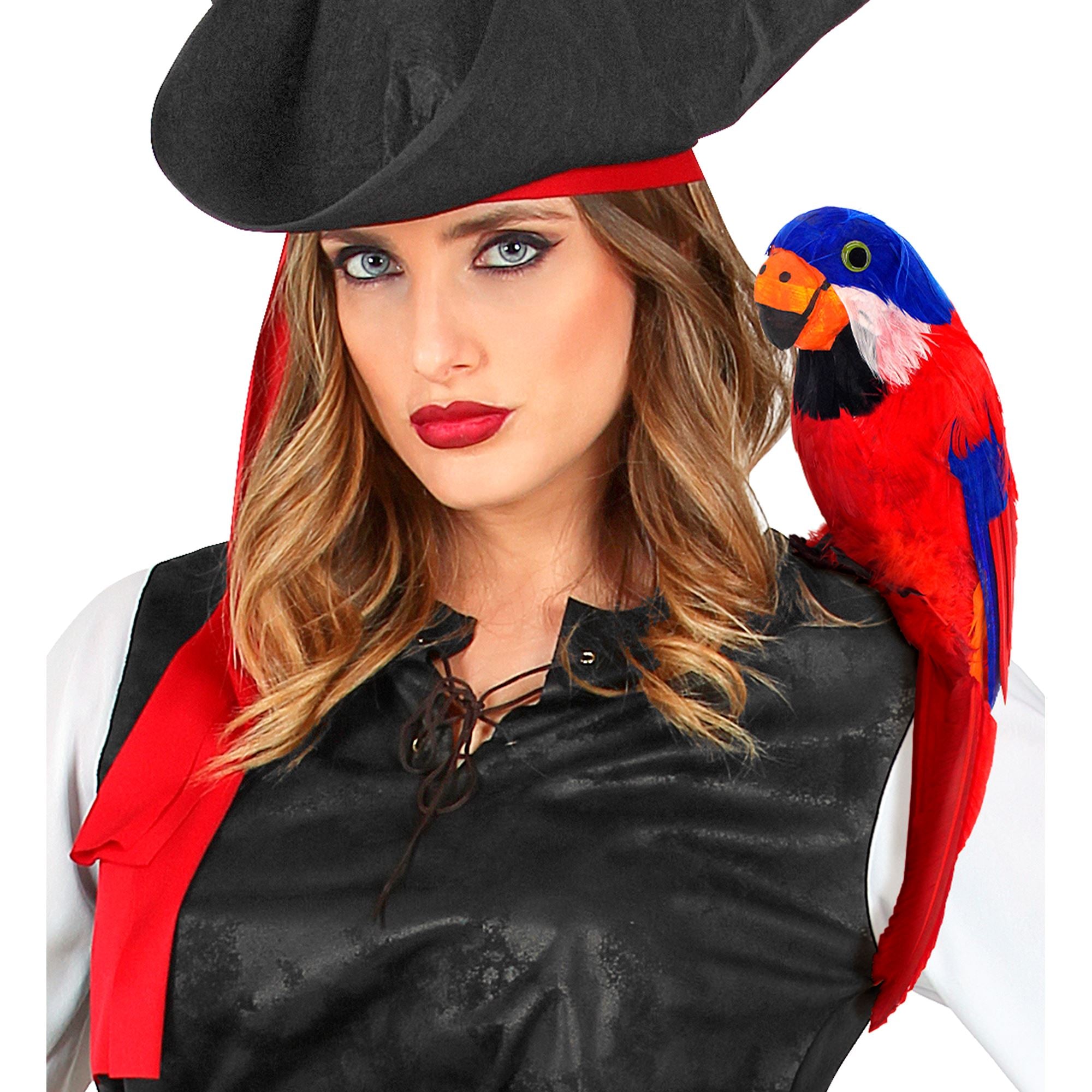 Dieser realistische rote Papagei mit seinen schönen bunten echten Federn ist etwa 40cm groß. Die Kunststoffbeine sind mit einem Gummiband verbunden, so dass Sie ihn in der Hand oder auf der Schulter tragen können. Er ist ein ideales Accessoire, um Ihr Piraten Kostüm für eine Kostümparty, einen Auftritt, Karneval oder eine andere Gelegenheit zu vervollständigen.