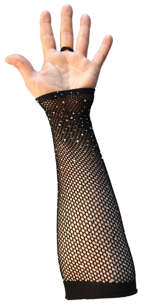 Schwarze Netzhandstulpe Strass