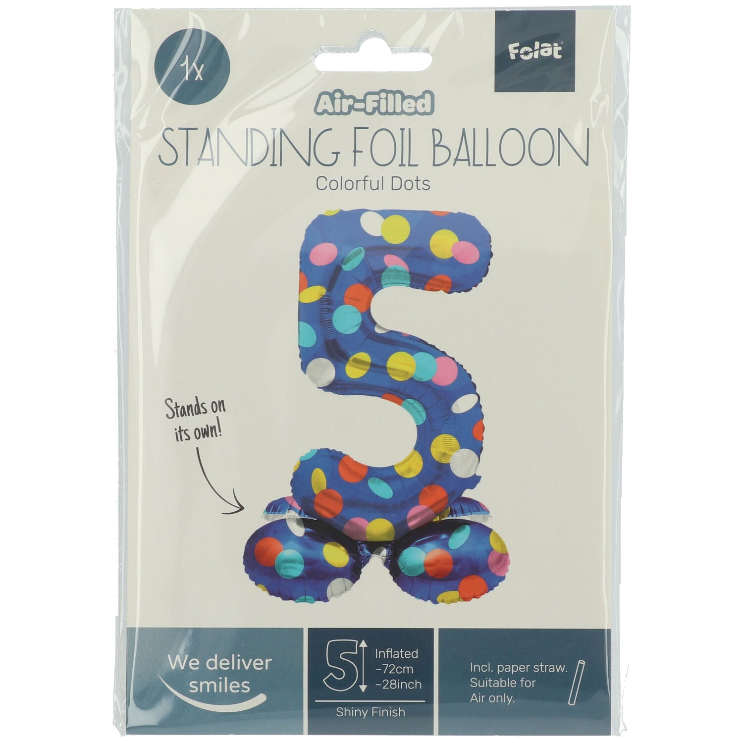 Die neuen 72cm großen Riesenballons sind auf jeder Party ein richtiger Hingucker und natürlich auch als Geschenk ein absolutes Highlight. Mittels eines Strohhalmes wird der stehende Zahl 5 Ballon Konfettiregen ganz leicht aufgepustet und somit nur mit Luft gefüllt. Eine Befüllung mit Helium ist somit nicht notwendig. Der Ballon besteht aus mehreren Teilen, die du einfach miteinander verbindest. Eine Anleitung dafür liegt bei.
