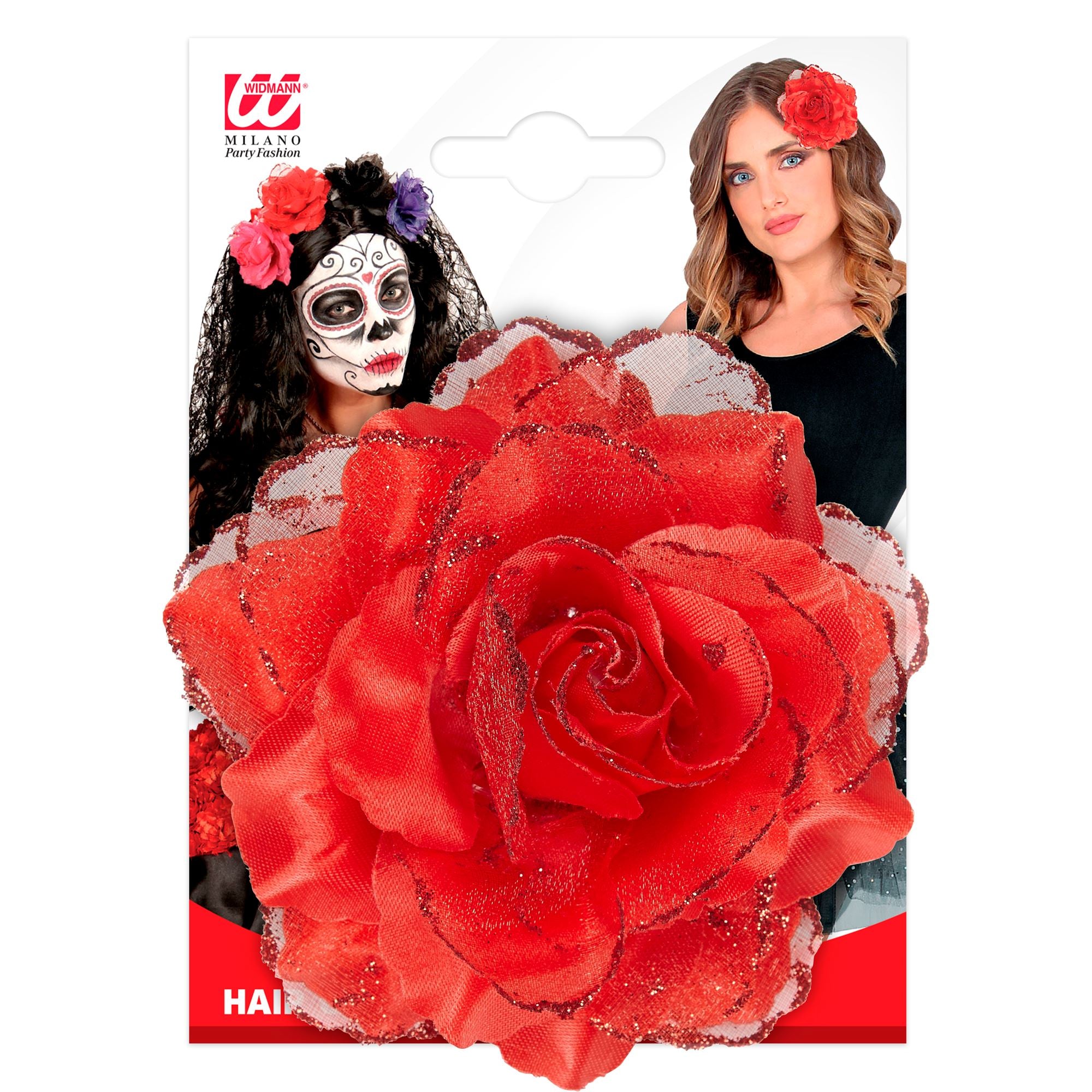 Die rote Glitzer Rosen Haarspange eignet sich nicht nur hervorragend für jedes Tag der Toten Kostüm, sondern auch für Flamenco Tänzerinnen und als tolles Accessoire für weitere elegante Motto Kostümierungen. Dank des einfachen Verschlusses kannst du sie leicht an Haarreifen, direkt in den Haaren oder auch an andere Accessoires befestigen. Die Spange besteht aus Kunststoff.