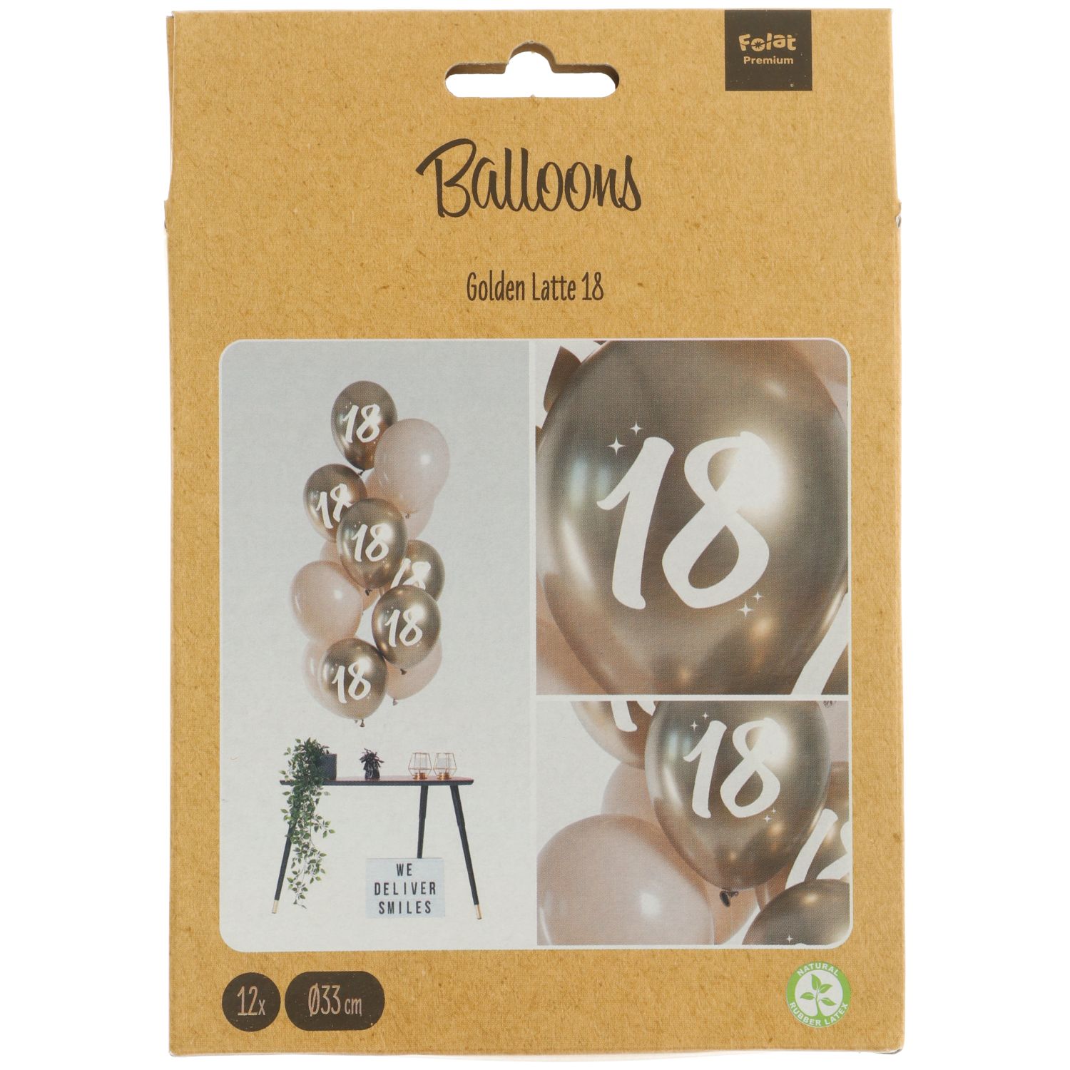 Zum 18. Geburtstag ist der 12 Golden 18th Ballonmix 33cm eine tolle Aufmerksamkeit oder eine gelungene Partydeko! Im Set sind 6 goldene Ballons mit Print und 6 Ballons im Farbton Nude enthalten.