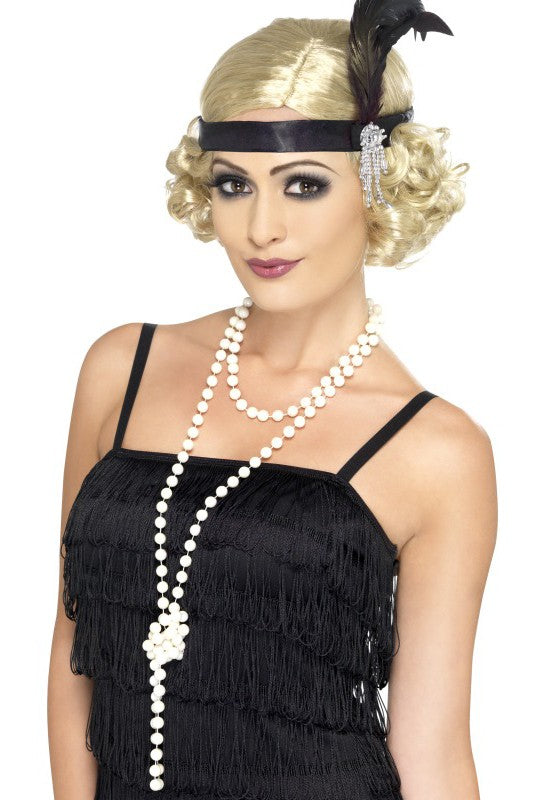 Die cremefarbene 20er Jahre Perlenhalskette ist ein tolles Accessoire für dein Charleston oder Flapper Kostüm. Aufwendig gestaltet steht sie einer echten Perlenkette in nichts nach, somit auch widerstandsfähig und für lange Partynächte perfekt geeignet.