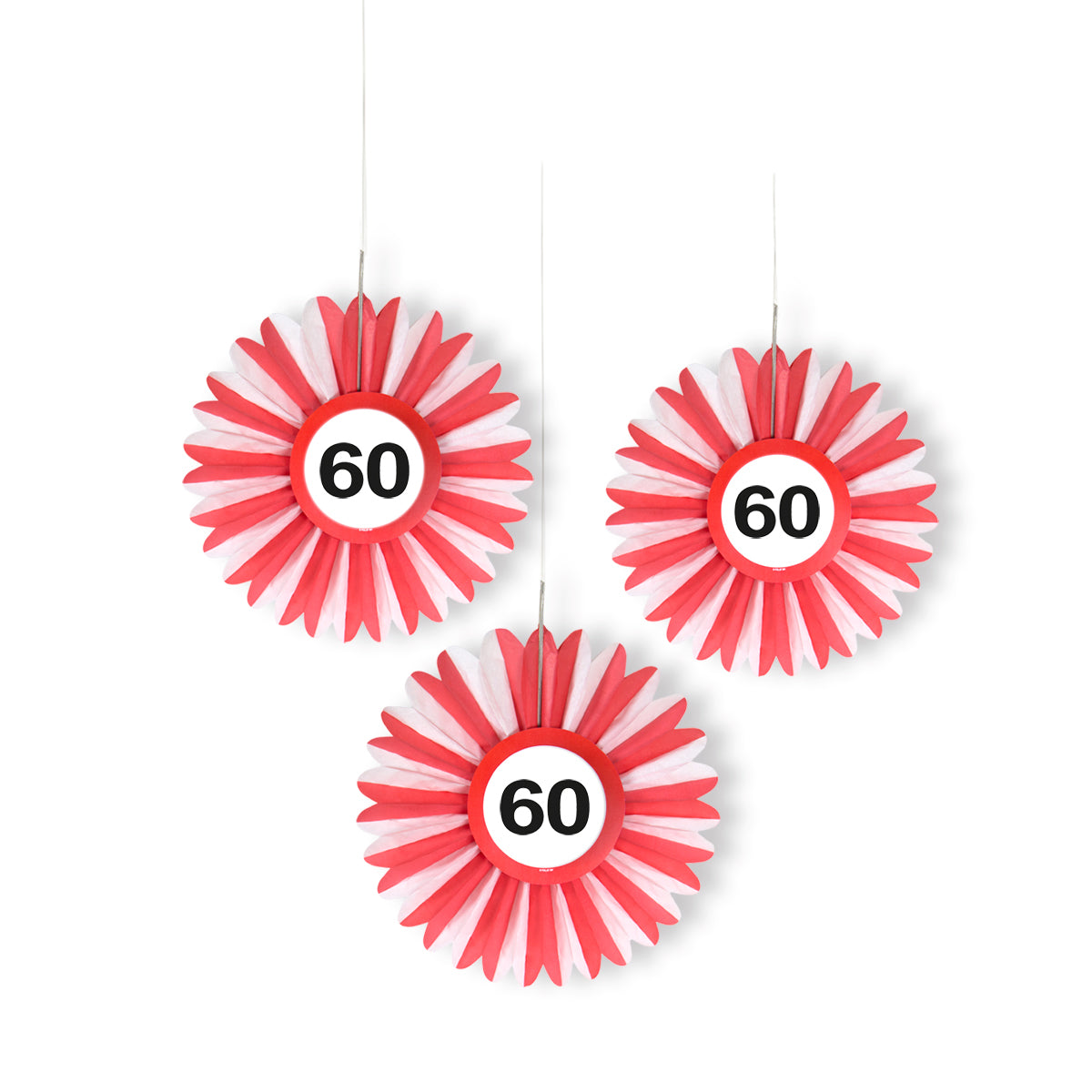 3 Verkehrsschild 60 Papierrosetten 25cm