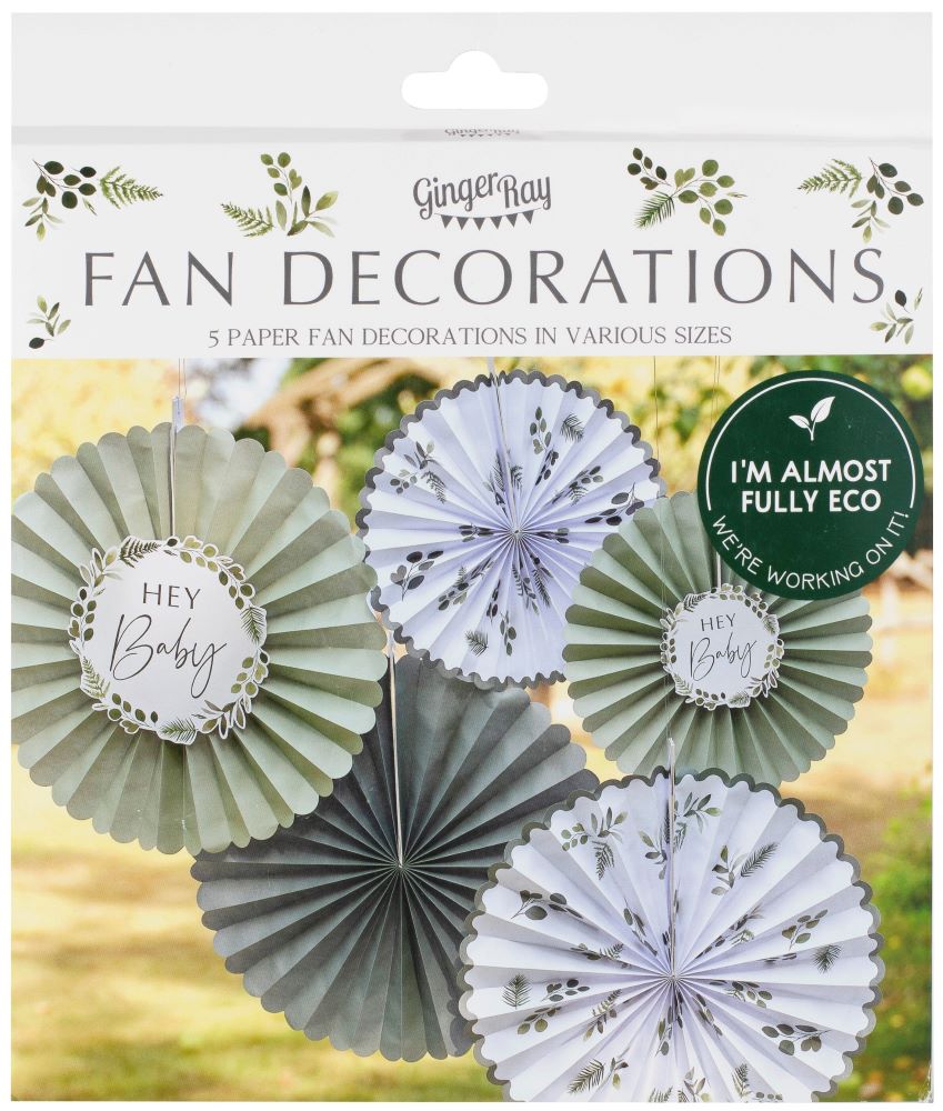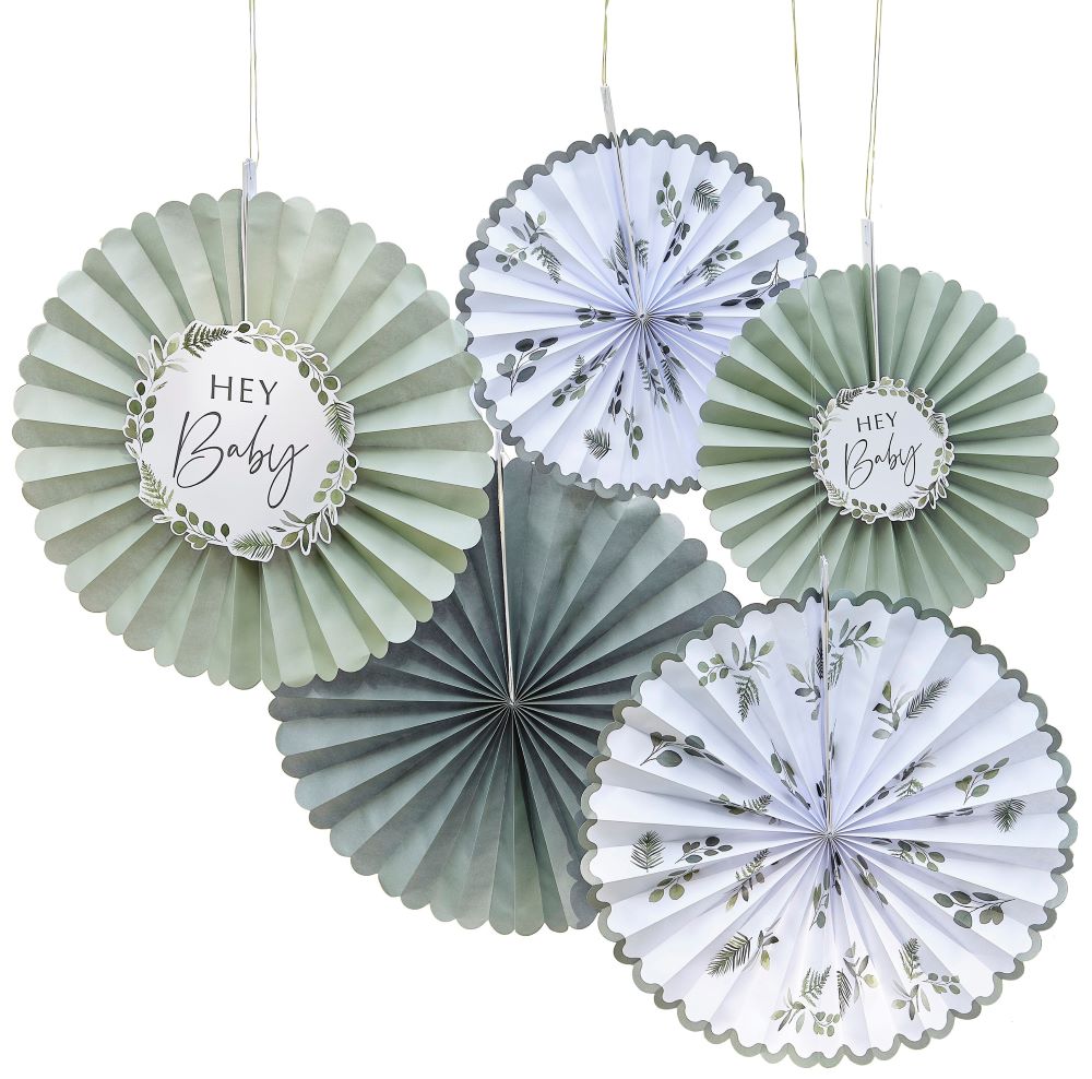 5 Hey Baby Papierrosetten Grün-Weiß-Sage
