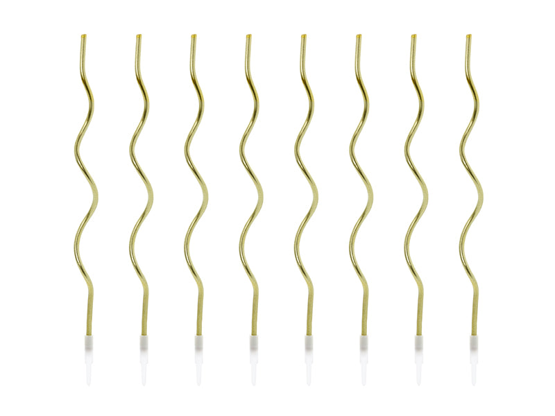 8 Goldene Curly Tortenkerzen 14cm