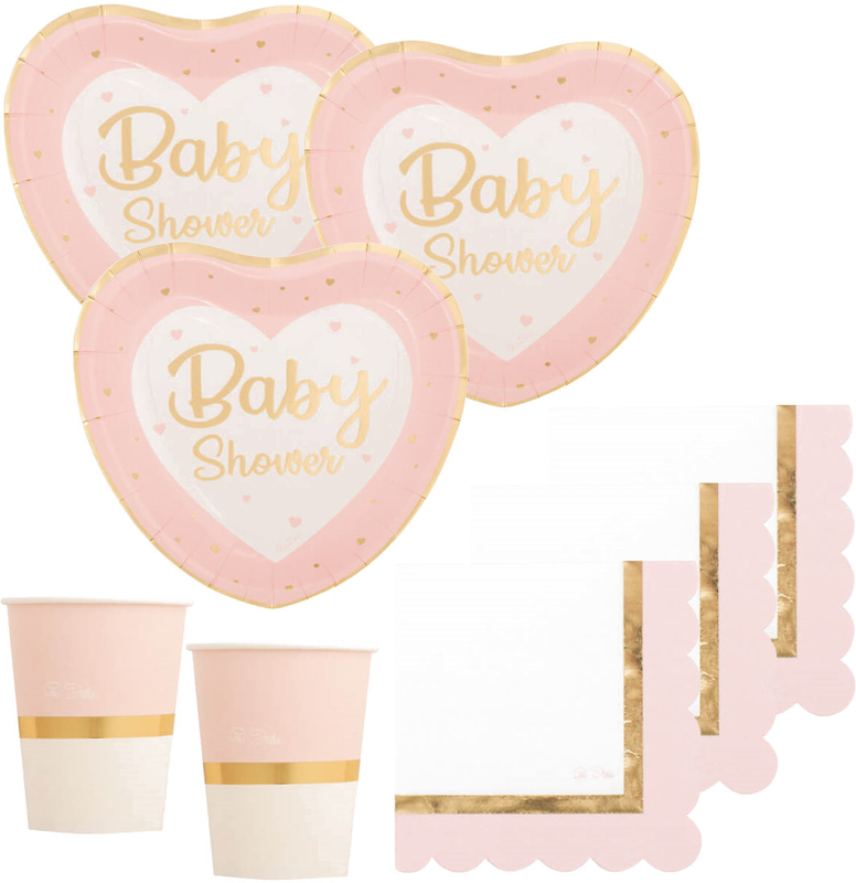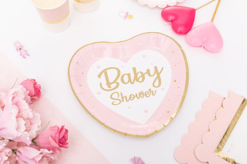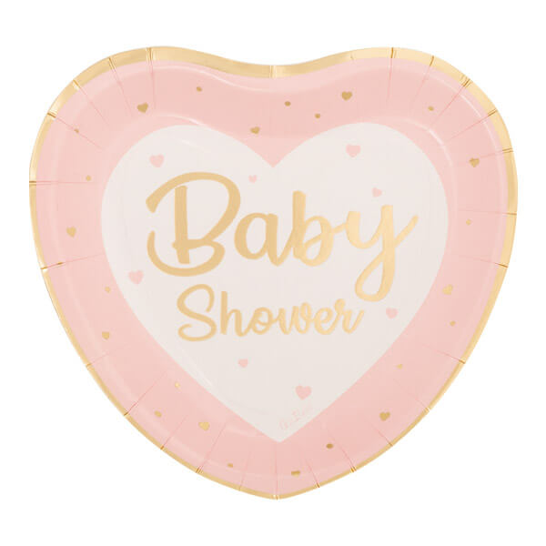 8 Papp Teller zur Baby Party Herzen in Rosa und Gold