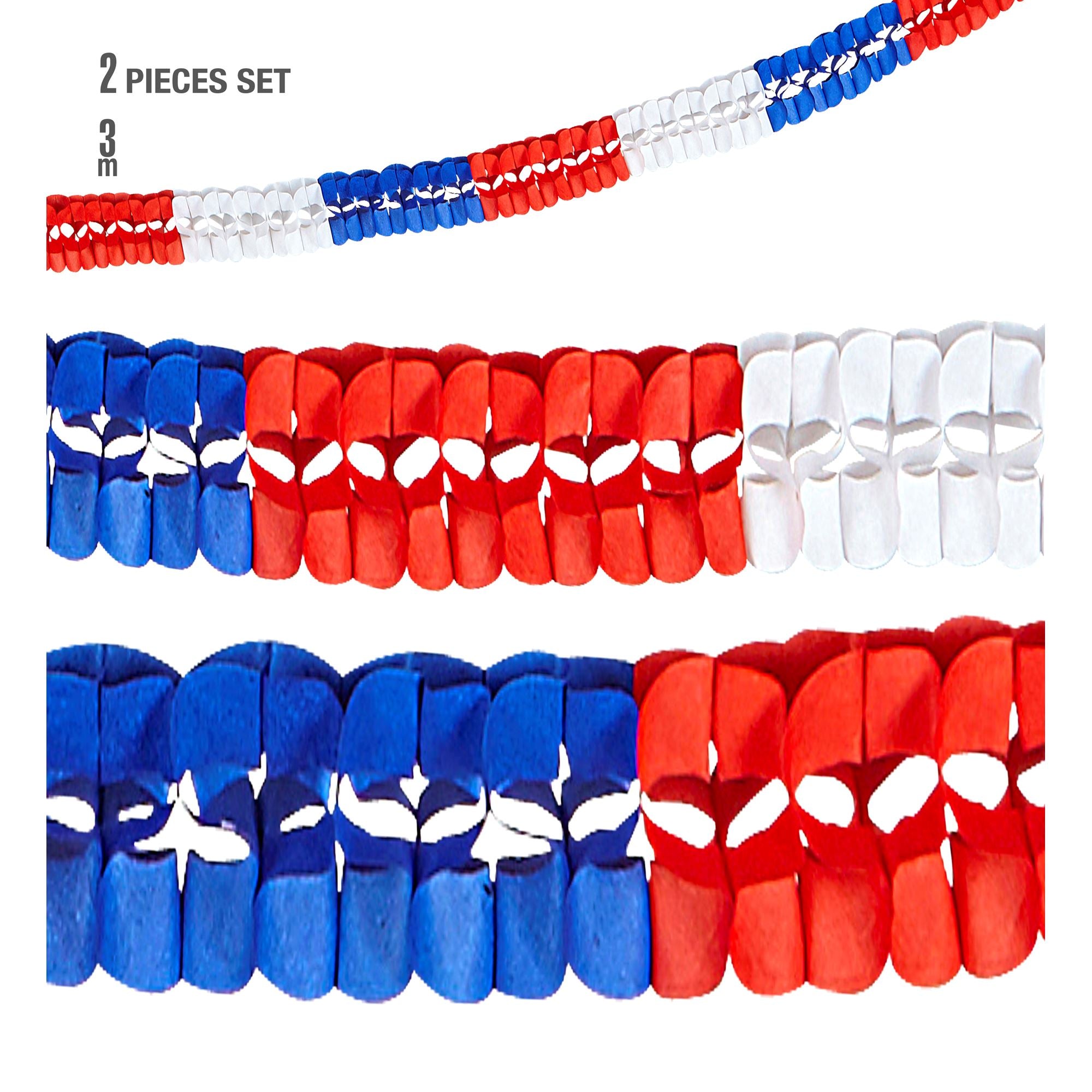 Vive la France! Mit dem Frankreich Boa Girlanden Set kannst du deine Wohnung ganz hervorragend in WM Fieber versetzen. Die coole Deko ist in den französischen Nationalfarben designed und wird dich und deine Freunde in euphorische Fußball Stimmung versetzen! Die beiden Girlanden sind je 3m lang, haben einen Durchmesser von 8cm und bestehen aus Papier.