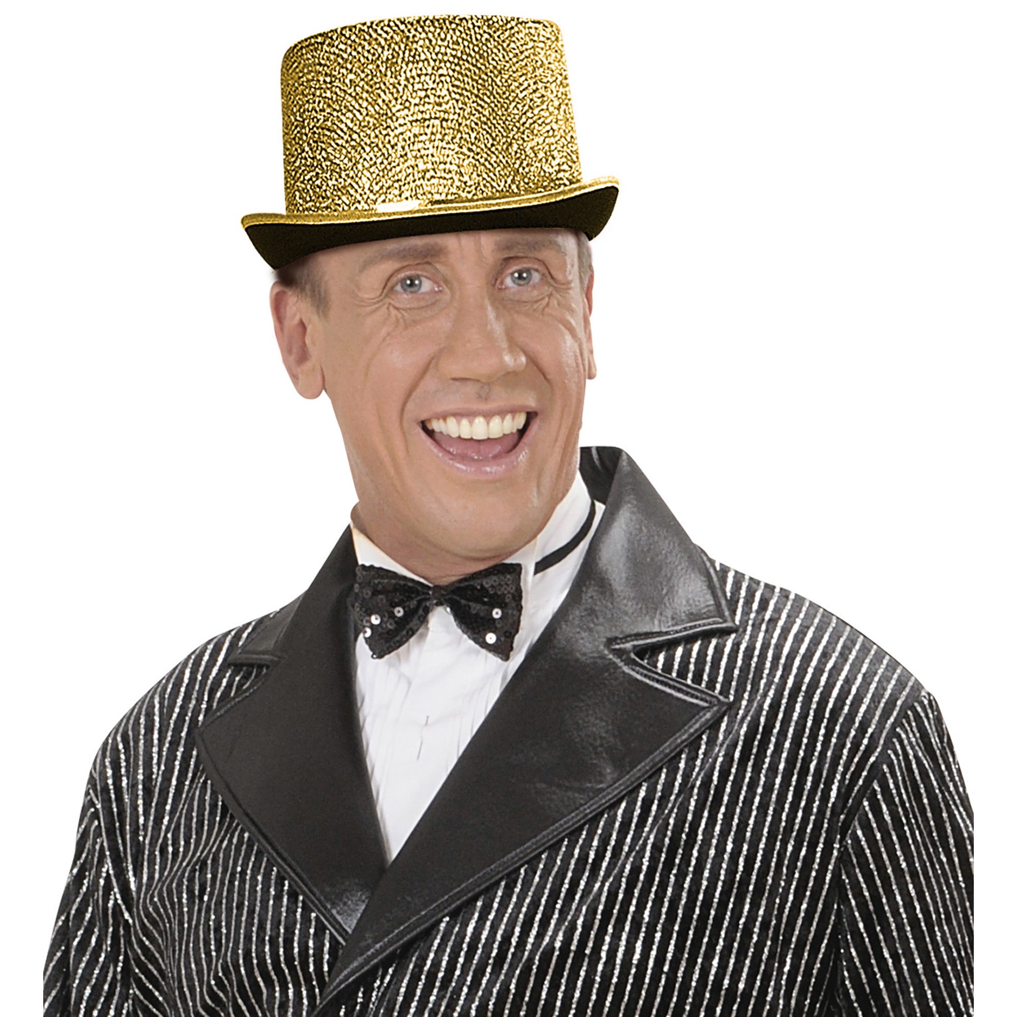 Der glitzernde Partyhut Gold ist ein stylisches Accessoire für viele Gelegenheiten. Mit dem goldenen, glitzernden Zylinder bist du auf jeder Show, Gala oder Party bestens gekleidet!