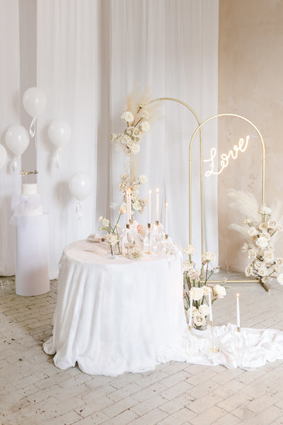 Hintergrundständer in Form eines Bogens, aus Stahl in goldener Farbe, Breite im zusammengeklappten Zustand 80 cm, Höhe 180 cm. Leicht zu montierendes Produkt, das nach dem Zusammenklappen eine stabile Struktur bildet. Geeignet für mehrfachen Gebrauch, ideal für professionelle Anwendungen. Der Ständer besteht aus 6 Elementen. Anzahl der Elemente im Karton: 6 Ständerteile, 6 Schrauben für die Montage, 1 Inbusschlüssel und Anleitung. Abmessungen des Kartons: 118x53x8cm. Die genauen Maße des Ständers sind in der Grafik unter dem Produktfoto angegeben.