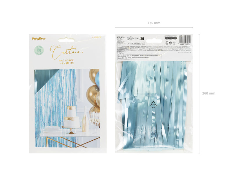 Hereinspaziert! Der Lametta-Partyvorhang in Eisblau ist eine tolle Möglichkeit deine Partylocation eindrucksvoll zu schmücken. Der blau glänzende Vorhang wirft einen glamourös frostigen Schein auf jeden, der durch ihn hindurchgeht. Mit den Maßen 2m x 1m kannst du ihn beispielsweise im Türrahmen platzieren oder als Fotohintergrund nutzen. Perfekt für Silvester, Geburtstage oder Mottopartys.