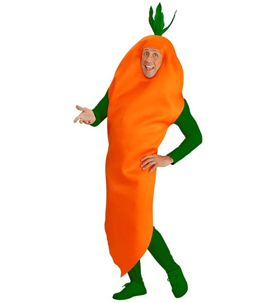Volle Möhre! Das Möhren Karotti Kostüm für Frauen und Männer besteht aus einem Ganzkörper Jumpsuit in unverkennbarer Karotten Optik und sorgt für Lacher im Karnevalstrubel!