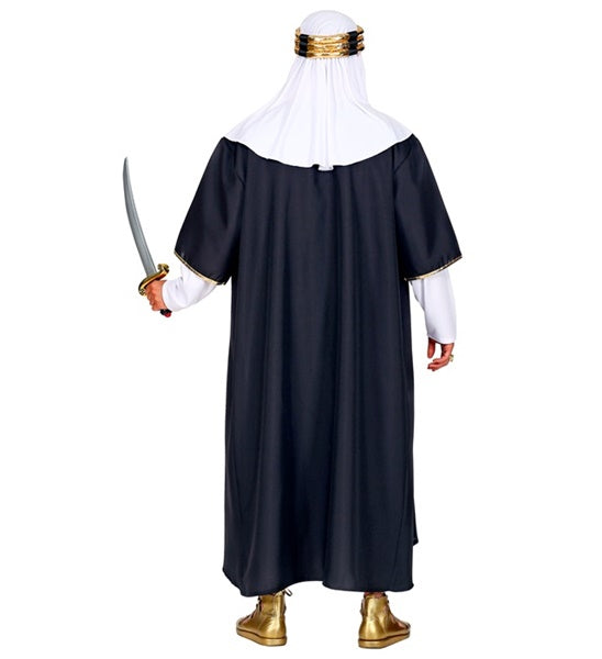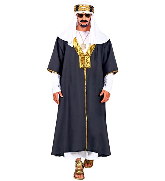Das Orient Sultan Herrenkostüm in schwarz-gold ist eine ideale Verkleidung für Motto- und Kostümpartys. Das erhabene Outfit besteht aus einer weißen Robe, über welche du die lange, schwarze Tunika mit den goldglänzenden Säumen trägst. Der farblich passende Turban rundet das Outfit perfekt ab.