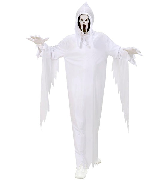 Buhuuuuuu! Sobald die Turmuhr Mitternacht schlägt, beginnt die Geisterstunde. Auf 12 Uhr nachts müsst ihr nicht warten - mit dem Poltergeist Kostüm für Kinder ist immer Geisterstunde. Es besteht aus einer langen Robe in Weiß und einer gruseligen Kapuzenmaske. Perfekt für eine schaurig-schöne Halloweenparty.
