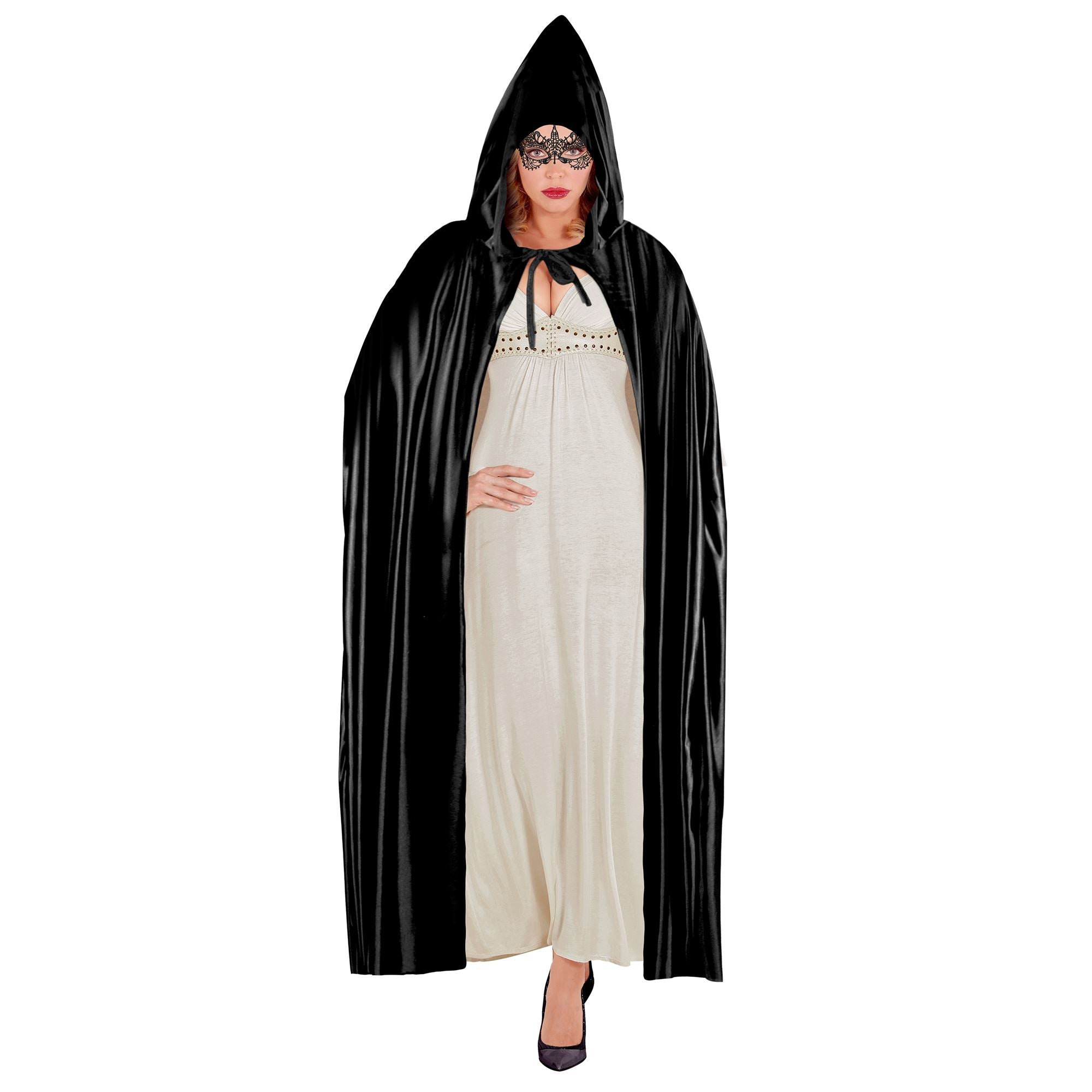 Das schwarze Cape mit Kapuze 142cm ist ein vielseitiges Accessoire für viele Kostümierungen!