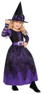 Das Traumhafte Hexen Mädchenkostüm besteht aus einem langen Kleid in den typischen Hexenfarben Schwarz und Lila sowie einem passenden Hut. Ein ganz klassisches Kostüm, das an Halloween nicht fehlen darf!