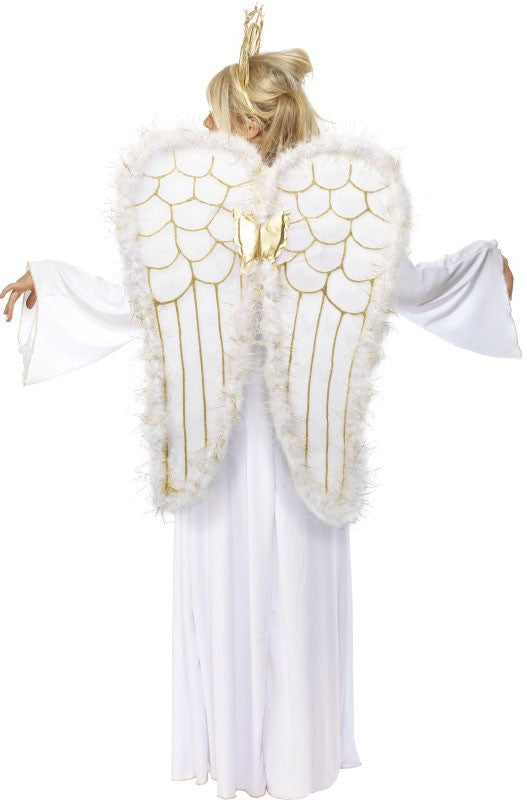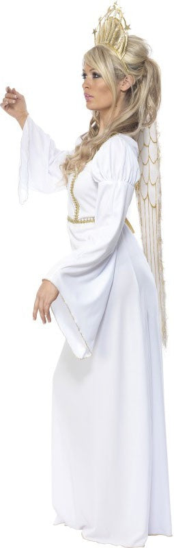 Das Weihnachtsengel Winterhauch Kostüm ist ein elegantes Outfit für alle Winterengel und himmlische Botinnen. Das figurbetonte Kleid ist mit goldenen Verzierungen versehen und erweckt einen majestätischen Eindruck.