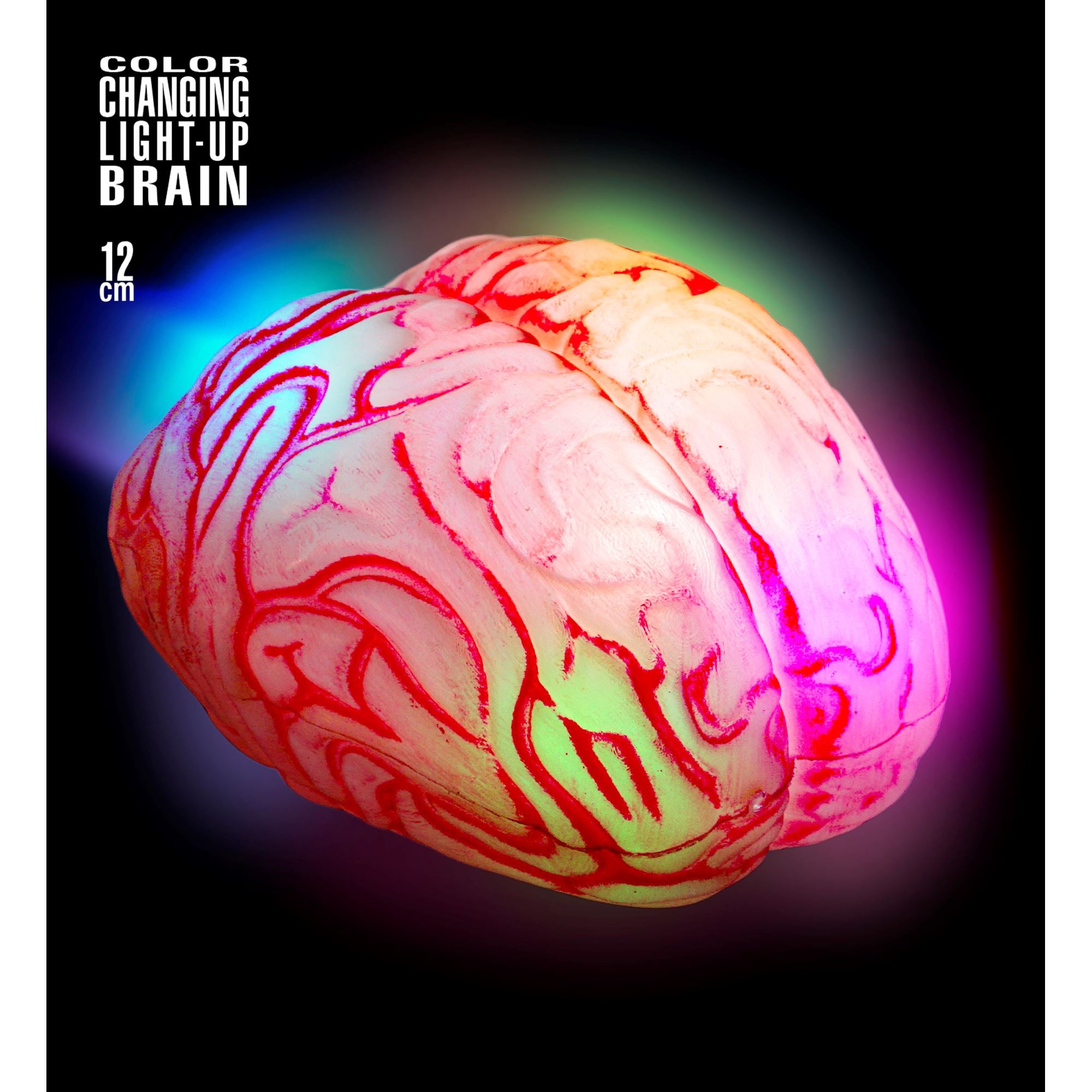 Dieses blutige Gehirn mit Farbwechsel ist perfekt für eine Horror-Halloween-Dekoration. Es hat die Maße 17cm x 12cm und ist aus Kunststoff. Der Farbwechsel bringt das Hirn in rot und lila  zum Leuchten. Dies funktioniert mit Batterien, welche im Lieferumfang enthalten sind.
