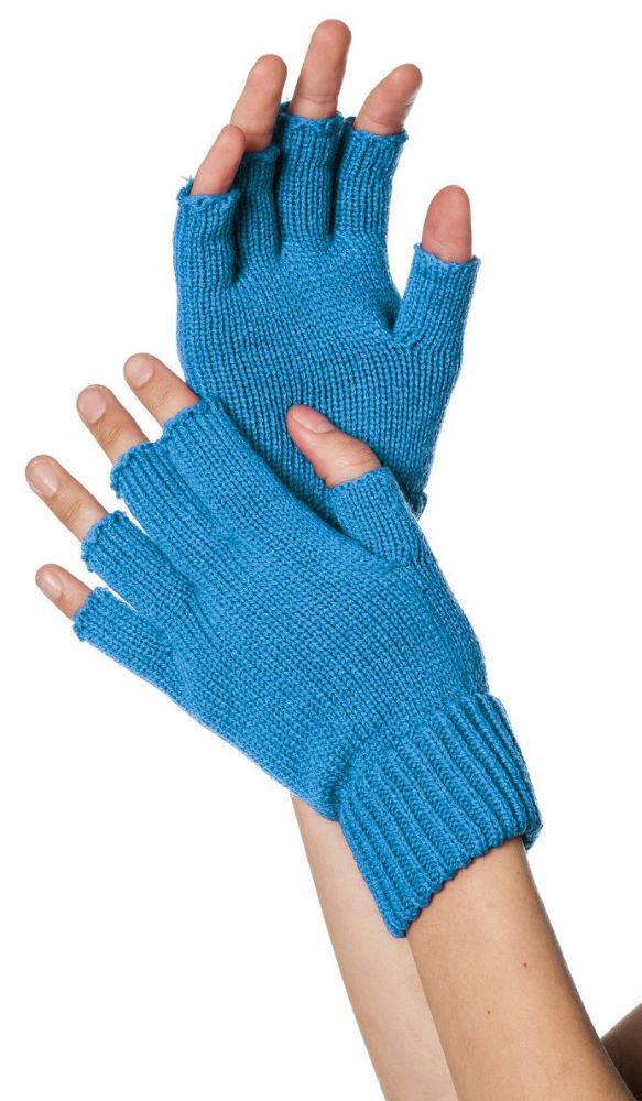 Fingerlose Strickhandschuhe azurblau