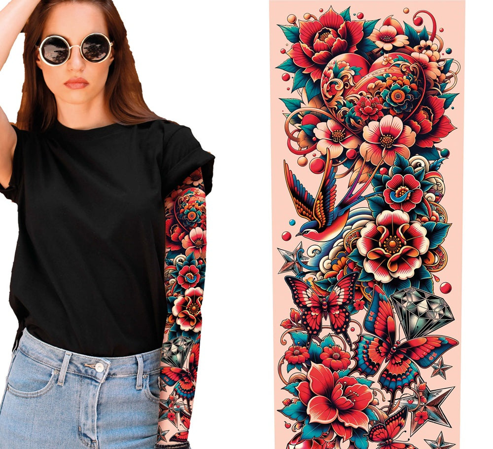 Tattoo Ärmel schwarz-weiß-bunt