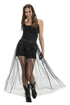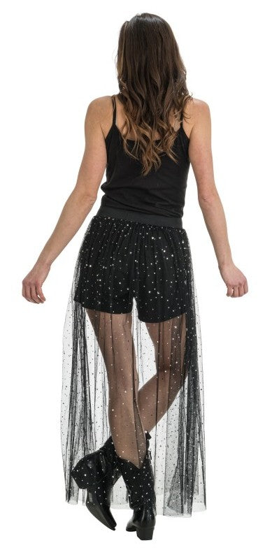 Dieser transparente schwarze Rock mit Glitzer ist der perfekte Begleiter für jedes Festival! Er bringt deinen Look auf das nächste Level und lässt dich strahlen. Mit seinem langen Schnitt und dem funkelnden Glitzer bist du der Hingucker schlechthin. Kombiniere ihn mit einem coolen Top oder einem lässigen T-Shirt und schon bist du bereit für die Party deines Lebens.