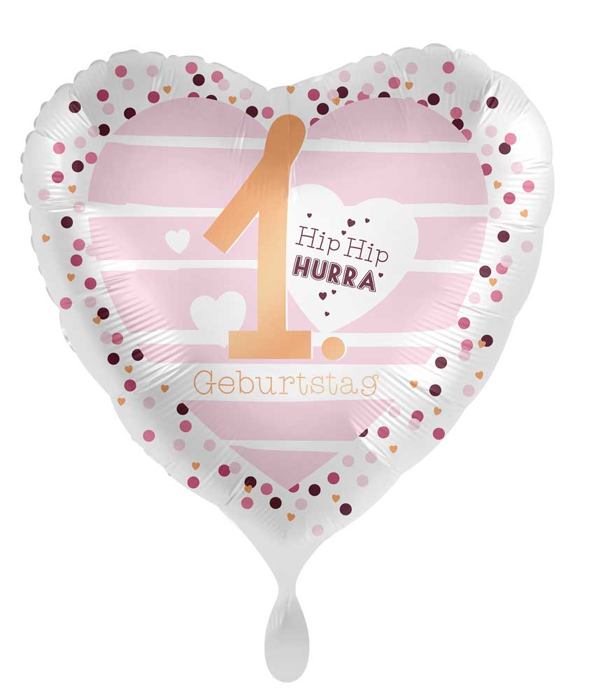 Dieser wunderschöne 1. Geburtstag Herz Folienbballon in Rosatönen ist perfekt für den 1. Geburtstag und 45cm groß.