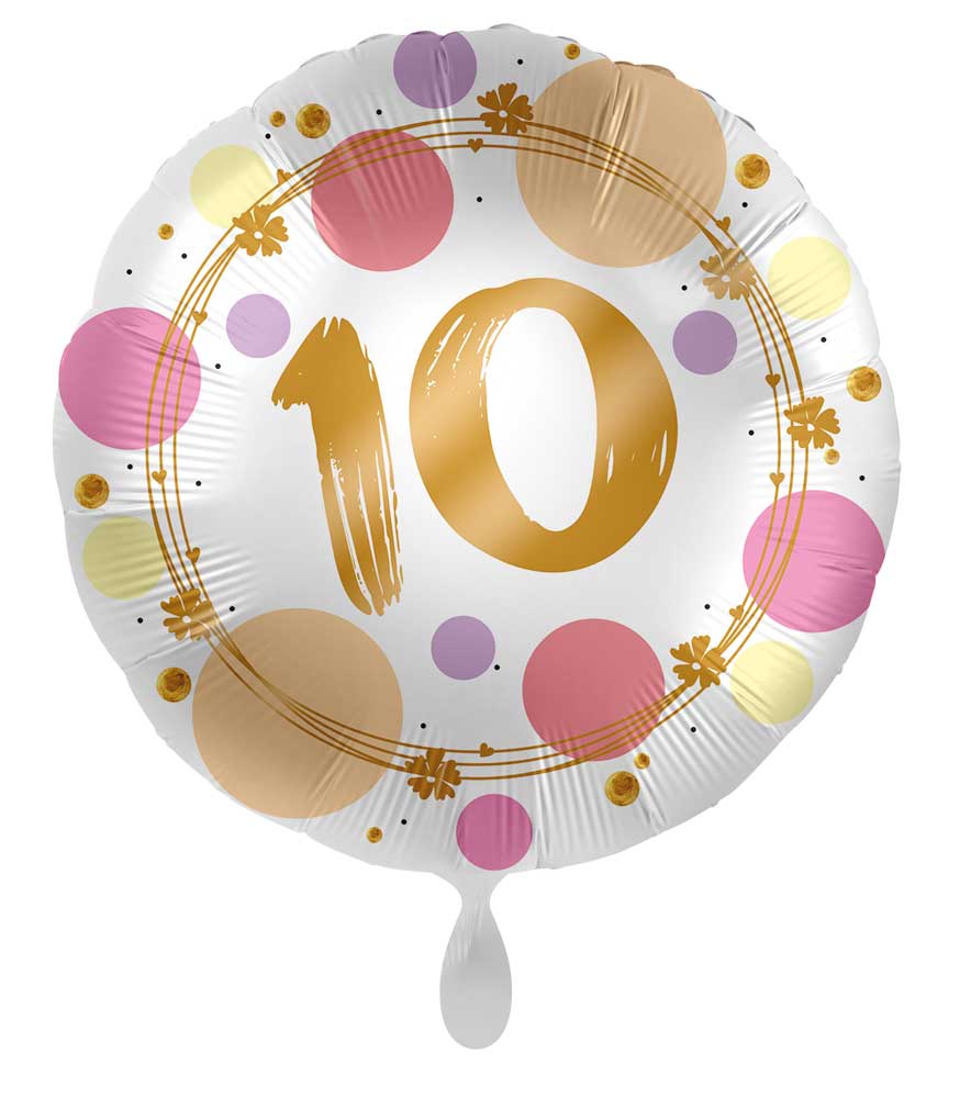 Dieser süße 10. Geburtstag Ballon Happy Dots ist 45cm groß und die perfekte Wahl für jeden 10. Geburtstag!