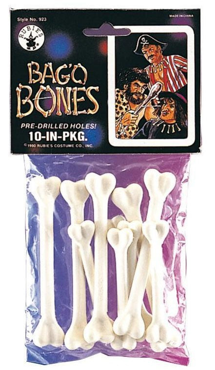 Du kannst von Knochen als Deko nicht genug haben? Dann solltest du dein Kostüm mit zusätzlichen Knochen aufpeppen. Mit den 10 Knochen bekommst du zwei unterschiedliche Größen von Knochen, die du nach Belieben selber verarbeiten kannst. Sie haben eine vorgefertigte Bohrung, sodass sie durch die ein Faden leicht durch gefädelt werden können und du sie an deine Kleidung annähen oder als Kette nutzen kannst. Du kannst diese Knochen aber auch als Tischdeko an Halloween oder Piratenpartys machen. Somit können die Knochen auch als Kette verwendet werden. Sie sind ideal für Piraten, Höhlenmenschen oder Halloween Kostüme.