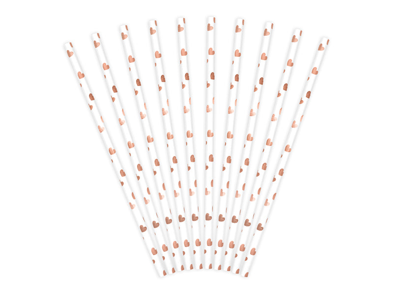 10 Roségoldene Herzchen Strohhalme 19,5cm
