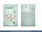 Die Eco metallic Ballons perlweiß sind aus natürlichem Latex vom Kautschukbaum gefertigt. Sie überzeugen durch ihre biologische Abbaubarkeit, die dem Kompostierungsprozess von Blättern gleicht. Für die Verpackung wurden ausschließlich natürliche Farben verwendet. Sie besteht aus sicherem Kunststoff und kann recycelt werden. Es gibt 100 Luftballons mit einer Größe von 30cm.