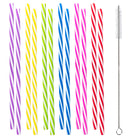 Set aus 12 wiederverwendbaren Plastikstrohhalmen, inklusive einer speziellen Reinigungsbürste.