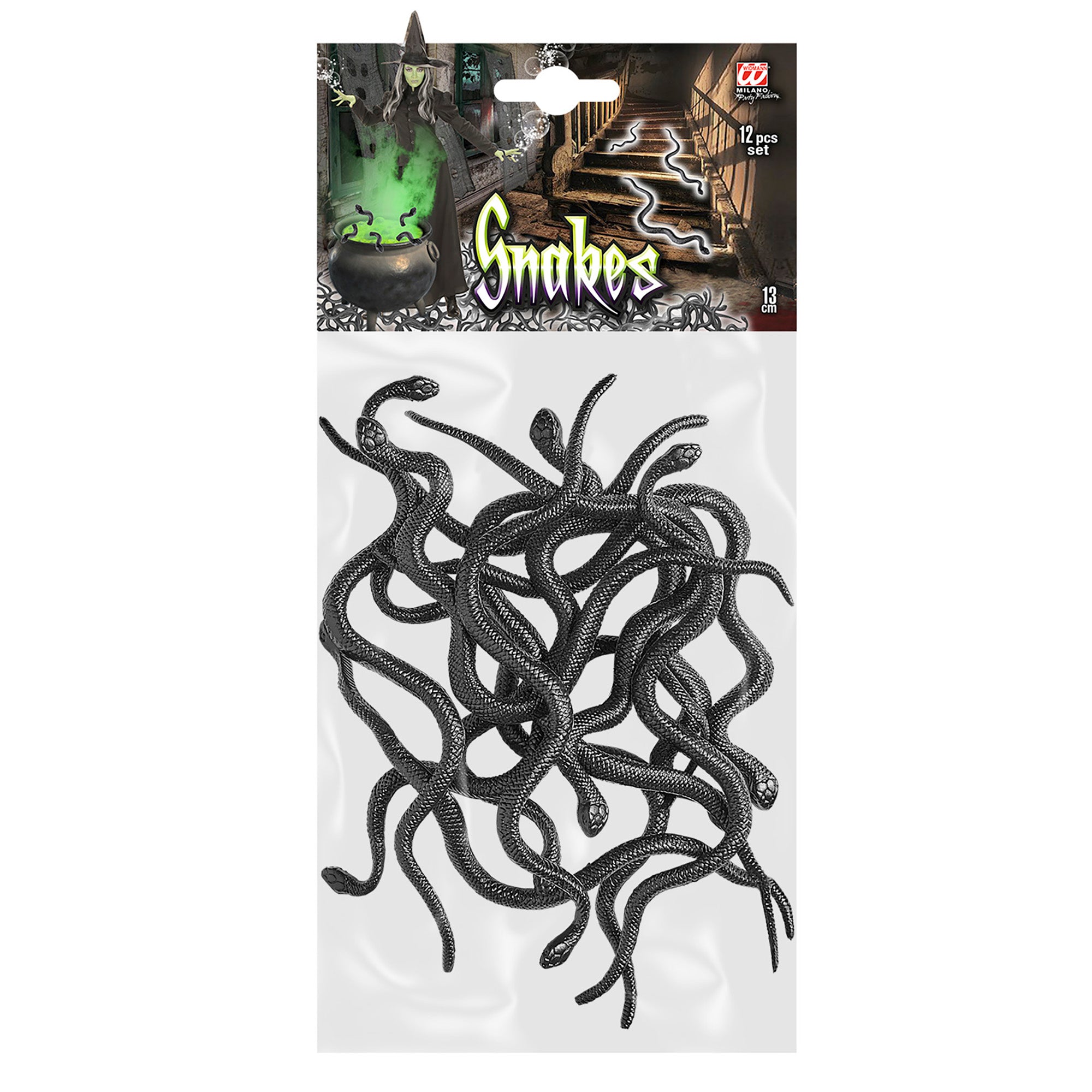 Du willst deinen Freunden einen gehörigen Schrecken einjagen? Dann sind diese 12 kriechenden Halloween Nattern ideal! Sie sind jeweils 12,5cm lang. Da sie aus Kunststoff gearbeitet sind, sind sie auch als Außendekoration geeignet. Das macht die gruseligen Schlangen zur perfekten Dekoration für Halloween und schaurige Mottopartys.