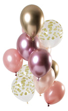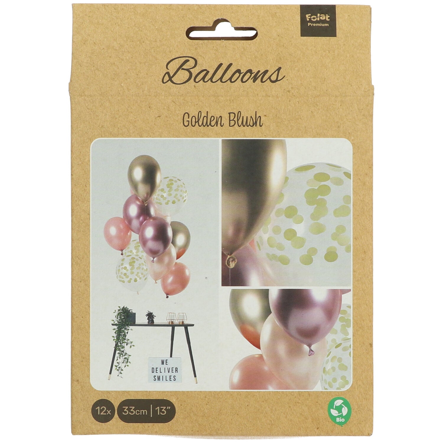 Die Latexballons Golden Blush sind ein wahrer Traum aus bunten Metallic Farben und erzeugen sofort einen tollen Blickfang auf deiner Feier. Im Set erhältst du 12 verschiedene Ballons in Metallic Optik oder aber mit Konfetti befüllt in verschiedenen Farben und einer Größe von jeweils 30cm.