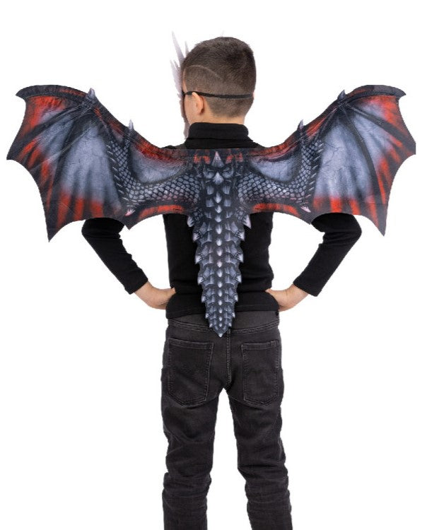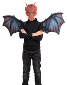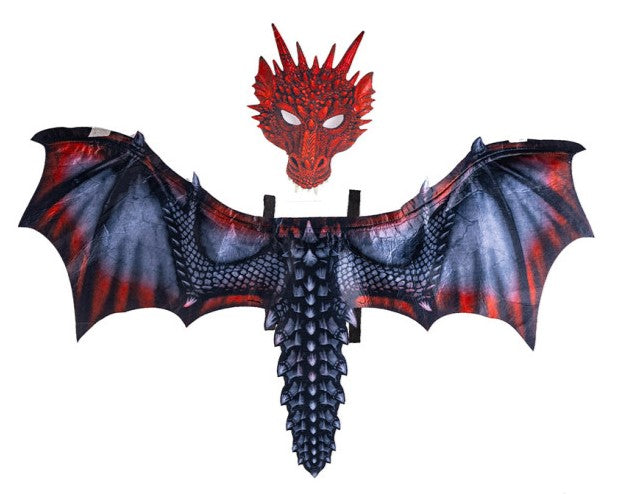 Dieses 2- teilige Verkleidungsset Roter Drache besteht aus Flügeln, welche eine Größe von 96 cm hoch x 60 cm messen sowie der dazu gehörigen Maske.
