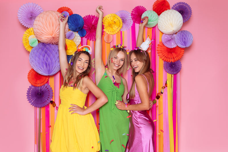 Die Papierrosetten haben einen Durchmesser von 20cm, 25cm und 30cm.