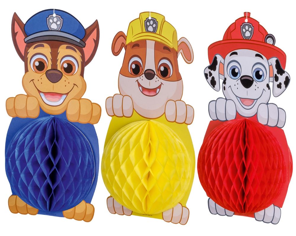 Die 3 Wabenfiguren in der Größe von 15 x 30cm aus der Paw Patrol Serie sind perfekte Dekorationselemente für eine Paw Patrol-Party oder Feier. Sie sind aus buntem Papier gefertigt und mit den beliebten Charakteren der TV-Serie bedruckt, was sie zu einem tollen Blickfang macht. Diese Wabenfiguren können an Wänden, Türen oder als Teil der Tischdekoration angebracht werden, um eine fröhliche und einladende Atmosphäre zu schaffen. Sie sind eine großartige Möglichkeit, die Party noch festlicher zu gestalten und die kleinen Gäste zu begeistern.