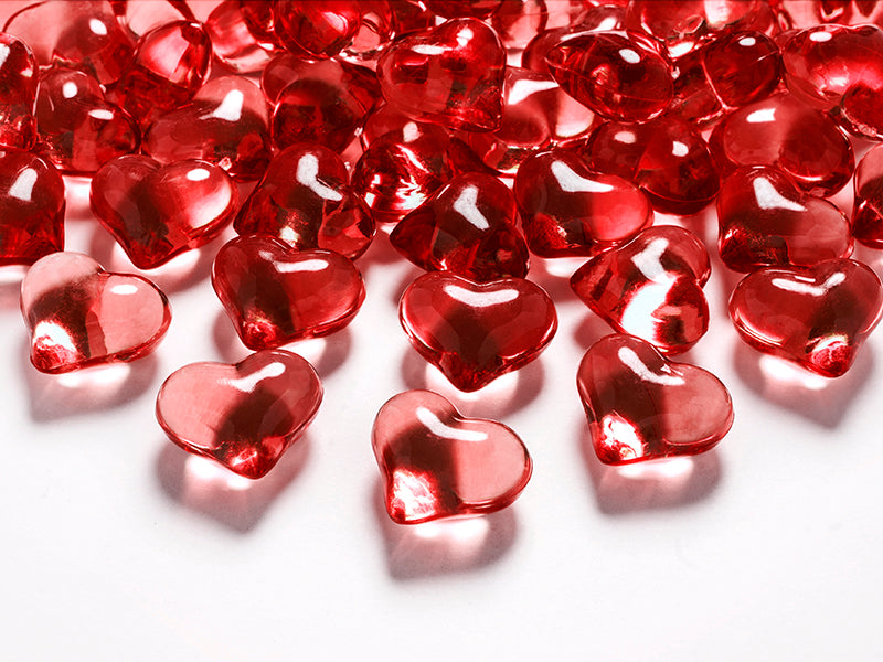 Mit diesen 30 Kristall Streudeko Herzen in Rot kannst du deinen Tisch in einen romantischen, edlen Ort verwandeln. Kombiniert mit roten Servietten, roten Kerzen und roten Rosen wird die Tischdeko zu etwas ganz Besonderem und lässt Herzen höher schlagen. Aber auch Kerzen mit diesen Herzen auf einem großen, goldenen Teller werden zu einem Blickfang. Geschenke mit diesen Herzen dekoriert, werden zu einem Highlight. Diese Deko, ein Herz misst 2,1cm, ist die ideale Wahl für einen romantischen Valentinstag, euren Hochzeitstag, für einen geliebten Menschen oder einen besonderen Jahrestag.