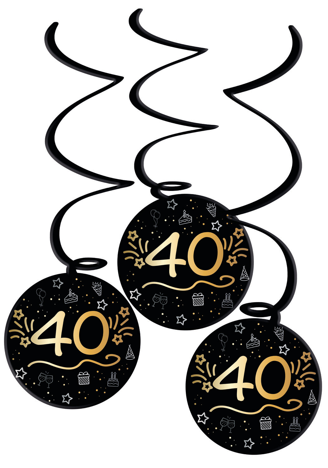 Der 40.Geburtstag, der nächste Meilenstein, das muss gefeiert werden! Diese 40. Geburtstag Hängedekoration Shining Glam, welche aus insgesamt 3 Hängern besteht, in schwarz mit dem Schriftzug "40" gestaltet wurde, wird deine Party in beeindruckender Weise ins stilvolle Licht rücken. Die Hänger sind beidseitig bedruckt und lassen sich mittels einer Seilschlaufe sehr leicht aufhängen.
